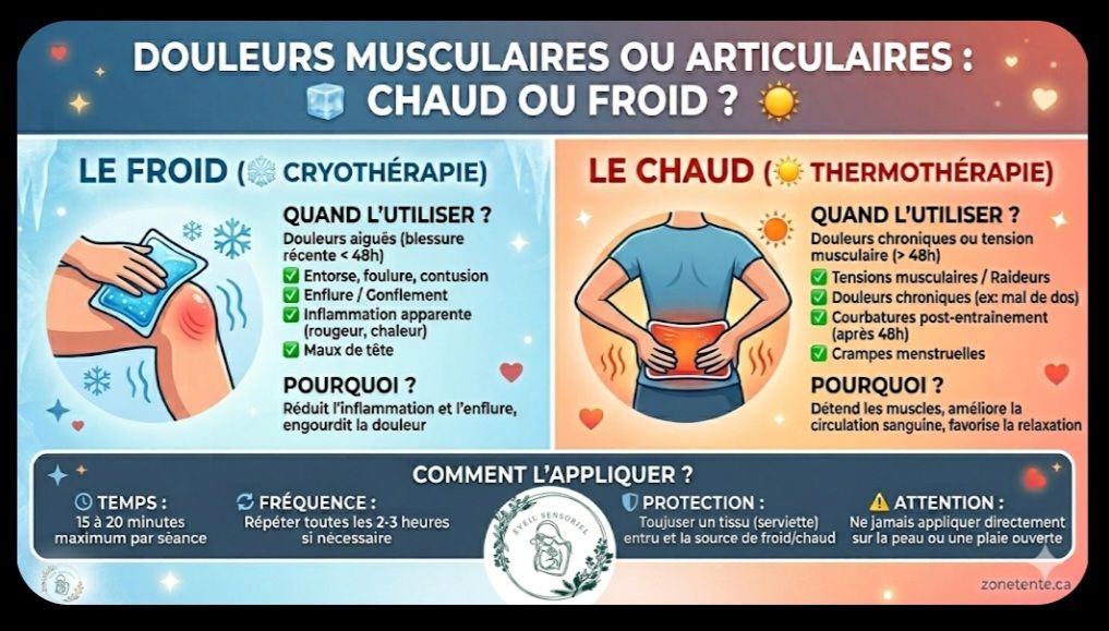 -Le Froid : Appliqué sur les zones inflammatoires ou les micro-lésions pour apaiser la douleur et favoriser la vasoconstriction.